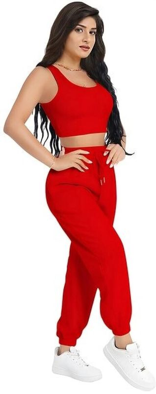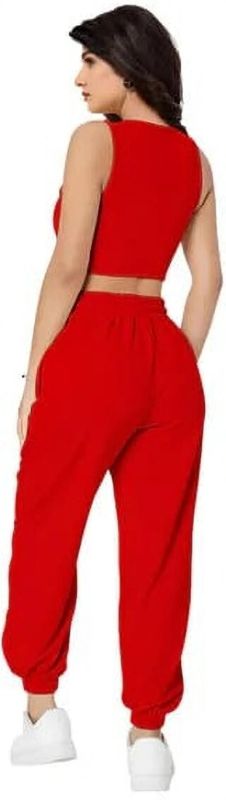 Ladies Red Crop Top & Joggers Set
