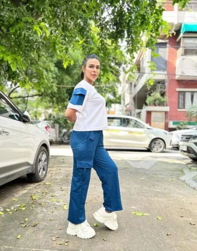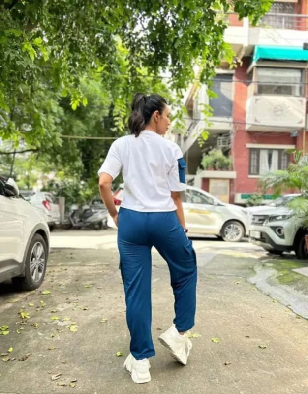 Ladies White & Teal Blue Polyester Co-Ord Set