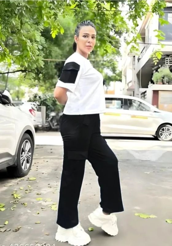 Looking for "Ladies White & Black Polyester Co-Ord Set" ?