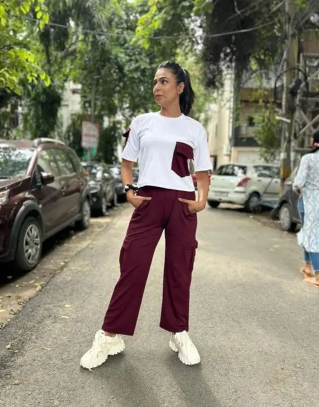 Looking for "Ladies White & Maroon Polyester Co-Ord Set" ?