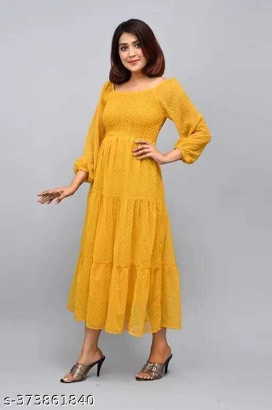 Home › Products › Ladies Stylish Long Dresses › Ladies Yellow Georgette Long Dress
